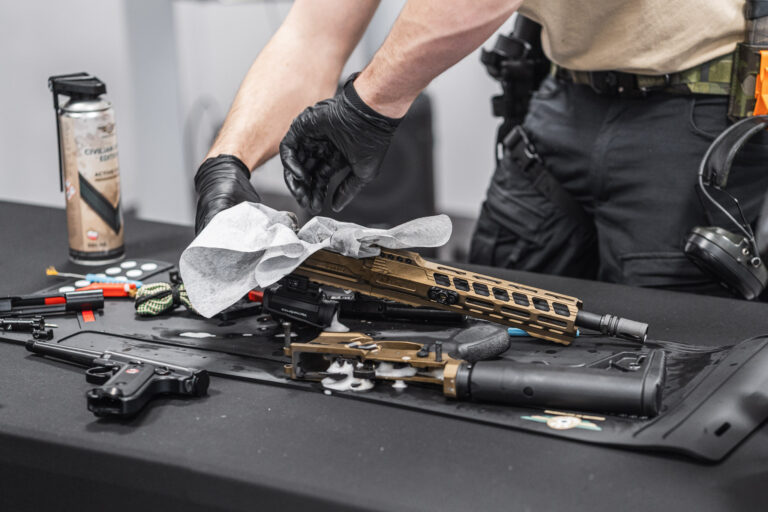 Ostatnim krokiem jest smarowanie/konserwacja. Jeżeli korzystasz z broni regularnie, smarujesz ją tylko w miejscach gdzie części się poruszają. Na dłuższe odstawienie do szafy, rozprowadzamy olej szmateczką na całej broni.