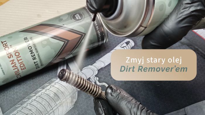 Wystarczy spłukać całość Dirt Remover’em. W środku nie będzie większych zabrudzeń oprócz starego oleju, który łatwo usuniesz za pomocą zmywacza.