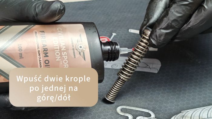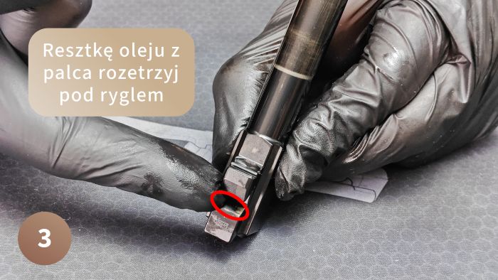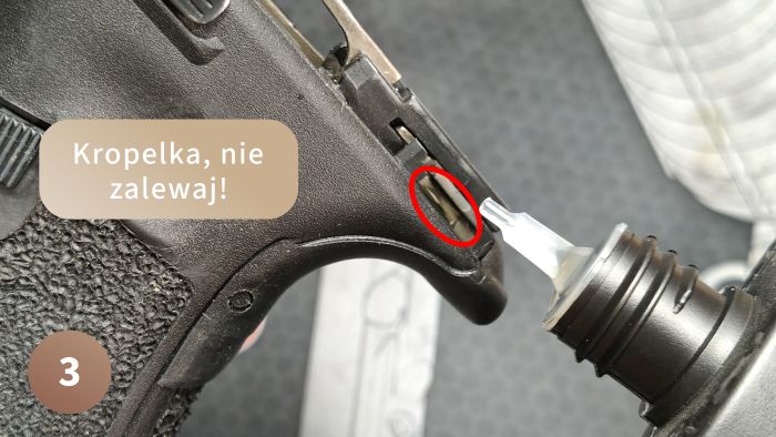 Pamiętaj, aby wpuścić tutaj chociaż jedną kroplę, dużo osób je olewa, a potem pistolet bardziej „piszczy” przy przeładowaniu.