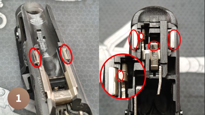 Przed rozkładaniem pistoletu na części pierwsze, zawsze przeczytaj instrukcję obsługi oraz obejrzyj przykładowe filmy jak robi to ktoś inny! Pamiętaj, że w środku jest bardzo dużo małych części tj. sprężynki i piny, które łatwo zgubić.
