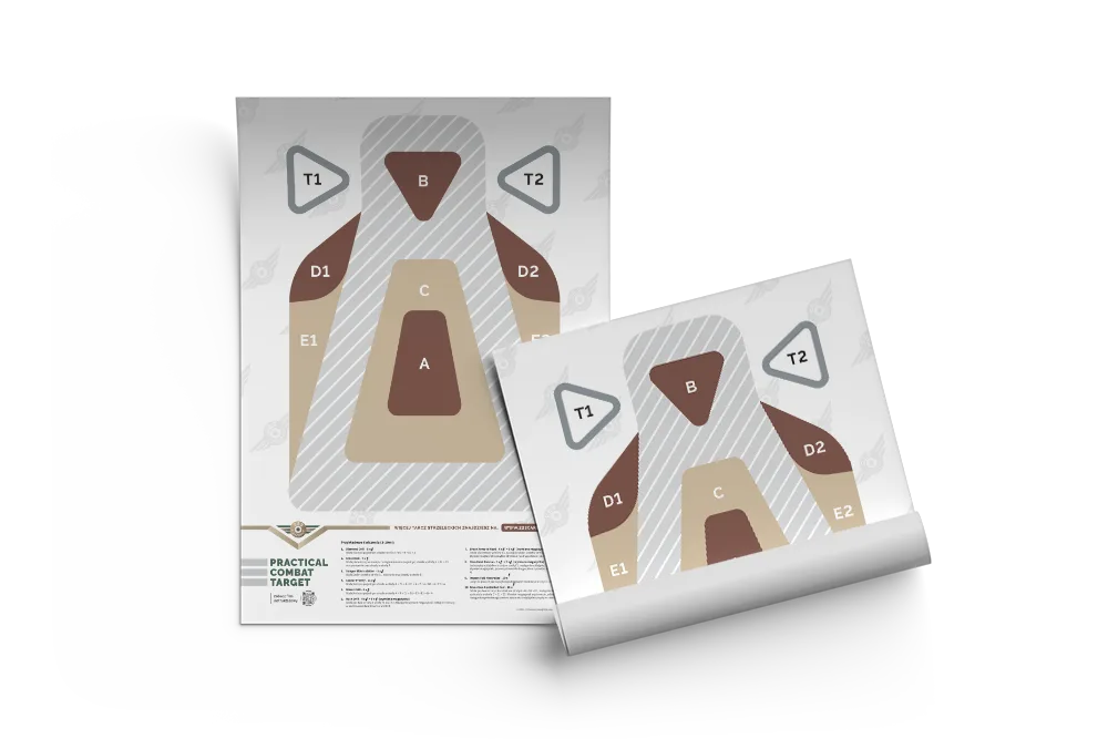 Tarcza zachowuje wszystkie kluczowe założenia treningu praktycznego: umożliwia ćwiczenie priorytetyzacji trafień, kontroli tempa ognia, przejść między strefami oraz pracy nad powtarzalnością i decyzyjnością. Jednocześnie jej uproszczona, czytelna forma sprawia, że jest bardziej neutralna wizualnie i przyjazna w odbiorze dla strzelców cywilnych, instruktorów oraz obiektów szkoleniowych.