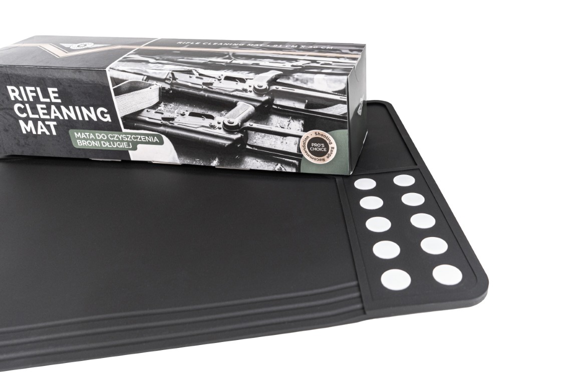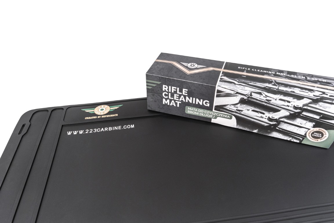 Wykonana z grubego, odpornego na przeciekanie PVC, chroni blat przed olejami, rozpuszczalnikami i zarysowaniami. Dzięki wymiarom 91 × 30 cm idealnie sprawdza się podczas czyszczenia i konserwacji karabinów zarówno w domu, jak i na strzelnicy.