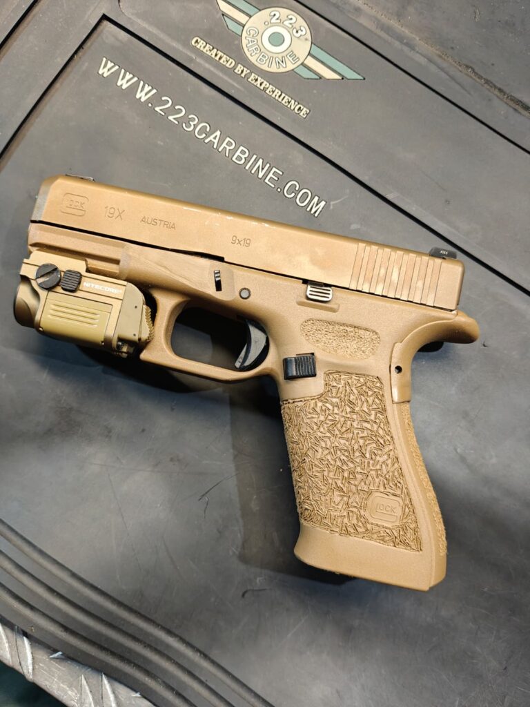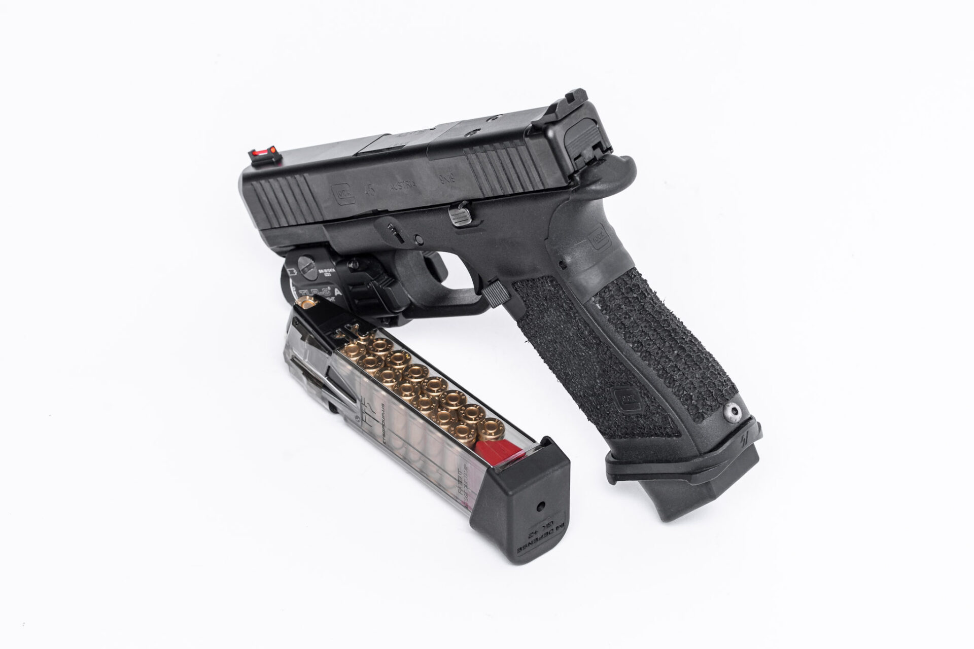 Standardowe zabiegi polegają na podcinaniu osłony blisko zwalniacza magazynka w celu złagodzenia kątów fabrycznego odlewu oraz podniesienia osi trzymania pistoletu prawą dłonią celem zniwelowania efektu dźwigni po strzale. Dodatkowo wedle uznania klienta żłobimy drugie wcięcie w środkowej części osłony spustu w celu utworzenia „Finger Handle” dla palca wskazującego bądź środkowego ręki wspomagającej.